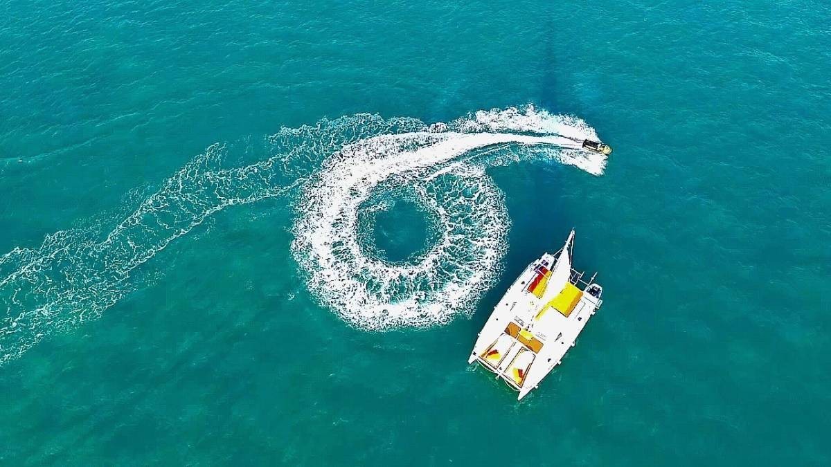 Thai Angel is equipped with two private cabins, two bathrooms, and a shower, ensuring comfort and privacy for all onboard. The alfresco dining area invites guests to enjoy meals under the open sky, while the four sunbeds and two oversized bow netting loungers provide ample space for sunbathing and relaxation. Whether you’re stretched out on a bean bag, sipping a cold drink from the cooler boxes, or enjoying music through the Samsung Bluetooth sound system, every moment aboard Thai Angel is designed to delight.